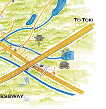 until you almost reach the intersection Akazu, and turn up the tiny little road that veers up to the left. Follow this until you see the black studio on the right.