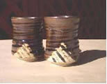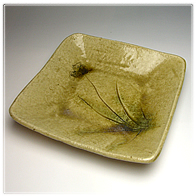 【素地】自家製の赤津山土(現在でも当家敷地内の珍珍山から採取している) 【釉】霞仙では瀬戸産の千倉長石を使用。 天然の含有物の微妙な作用により、釉薬表面に結晶が出る事が多い。他の産地の青織部に比べ、独特の濃い緑色が特徴。 【焼成】一般に青織部釉は酸化焼成されるが、霞仙ではいったん還元炎にしてから酸化に戻して、約1.260℃という高温で焚き終わる。 【渋抜き】焼成時に表面を覆う銀色光沢(酸化膜)の除去には、現代では希塩酸を使う事が多いが、霞仙では現在でも近在で採取したクヌギの笠を水に浸して作った“栃渋”に浸けている。 |
